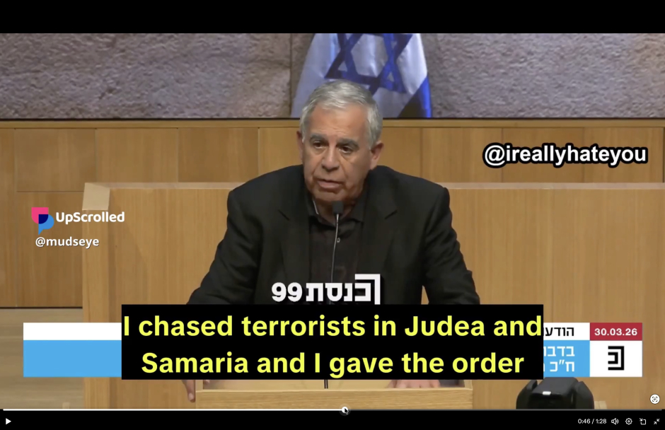 'I gave an order to shoot a terrorist, with hands cuffed behind his back, in the head."Yesterday at the Knesset, Mickey Levy, a member of so-called "centrist" party Yesh Atid, tried to outflank Jewish Power members from the right, by describing how he ordered the cold-blooded... pic.twitter.com/aVGwKx3xza