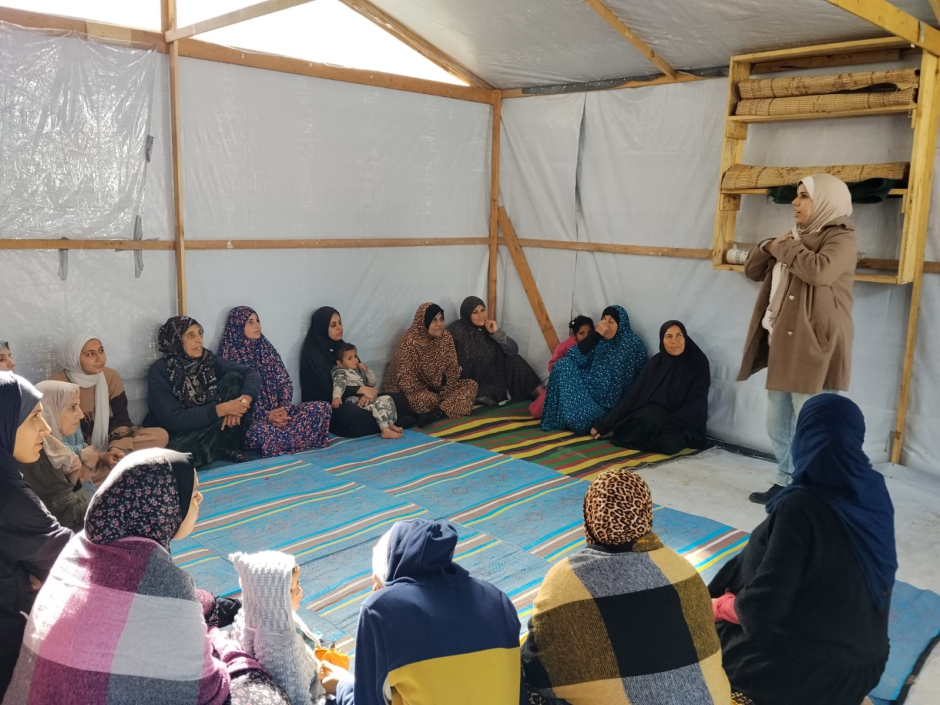 Lors du passage à la discussion ouverte, les femmes ont commencé à aborder les défis auxquels elles sont confrontées dans le camp. Les échanges ont porté sur l'exiguïté des espaces, l'absence d'intimité, les tensions liées à la vie collective, ainsi que sur la difficulté d'organiser le quotidien dans un contexte de pénurie de ressources. Les participantes ont commencé à déconstruire les causes des tensions, réalisant que de nombreux conflits ne naissent pas des situations elles-mêmes, mais de l'accumulation des pressions psychologiques. Cette prise de conscience a ouvert la voie à des propositions fondées sur la coopération, telles que la répartition des rôles entre voisines, l'entraide dans la garde des enfants ou encore le partage de certaines responsabilités quotidiennes afin d'alléger la charge individuelle.