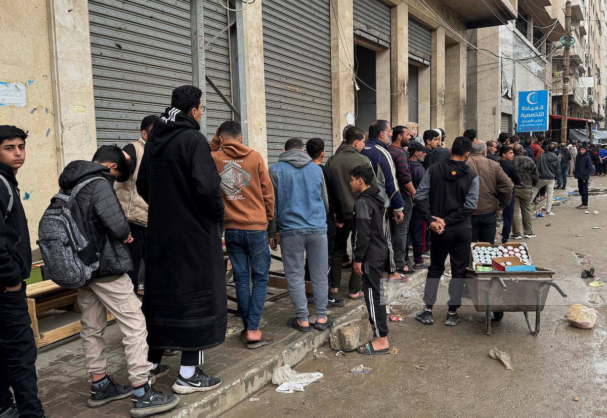 Les Palestiniens déplacés font la queue pour obtenir du pain à un point de distribution de la rue Al-Wehda à Gaza, alors que de graves pénuries s'aggravent dans la bande de Gaza.