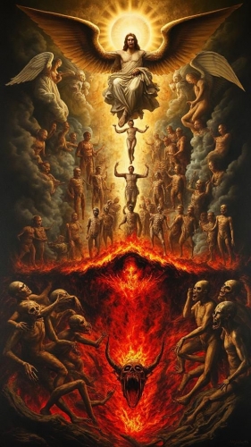 Dans ce contexte, des motifs théologiques apparaissent de plus en plus souvent dans le journal, notamment des références à la conception chrétienne de la culpabilité, du jugement et de la rédemption. Schmitt ne revient pas ici au christianisme sous la forme d'une piété personnelle, mais comme au dernier cadre conceptuel capable de nommer une situation dénuée de sens. Alors que la morale moderne échoue selon lui, le langage théologique de la culpabilité et du jugement conserve la capacité de structurer l'expérience de la catastrophe.