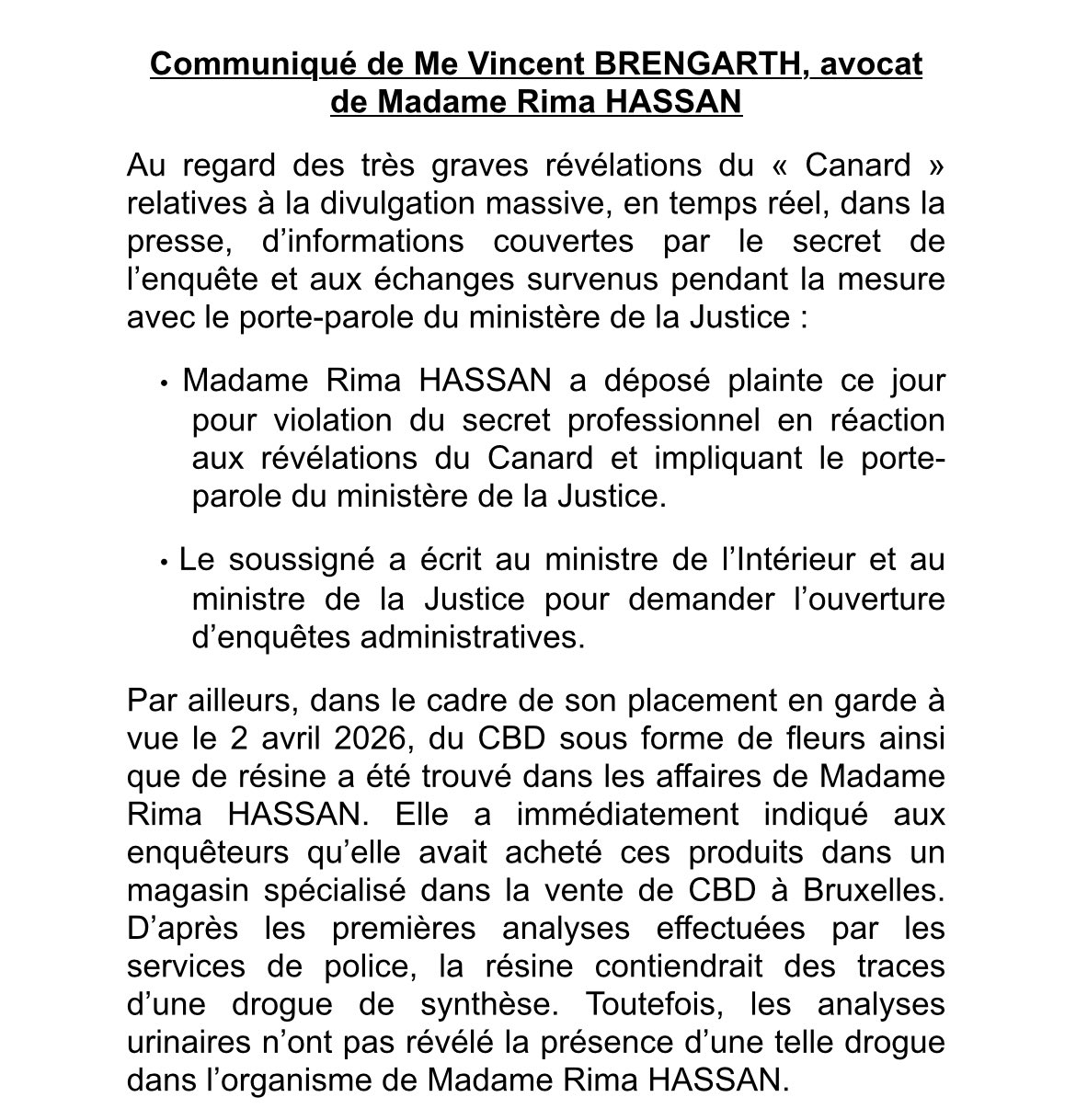 La plainte repose notamment sur les révélations du Canard Enchaîné : l'hebdomadaire satirique a ainsi rapporté comment la garde à vue de Rima Hassan, la semaine dernière, avait donné lieu à la diffusion dans la presse de fausses informations fournies par des services policiers et judiciaires, au mépris du secret de l'enquête.
