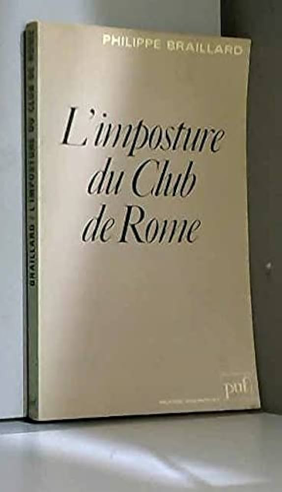 Dans un ouvrage incisif de 1982 aujourd'hui introuvable, L'imposture du club de Rome, le politologue suisse Philippe Braillard démontre la duplicité de ce club d'industriels et dénonce son catastrophisme outrancier qui, sous couvert de neutralité scientifique autour des limites de la croissance, œuvre à légitimer une vision du monde orientée vers une gouvernance globale technocratique, en déplaçant le débat politique vers le terrain de la gestion des ressources à l'échelle mondiale.
