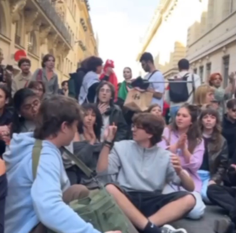 Blocage de plusieurs universités ce mardi, dont la Sorbonne (ci-dessous), contre la loi Yadan, pour la liberté d'expression et les droits des Palestiniens.