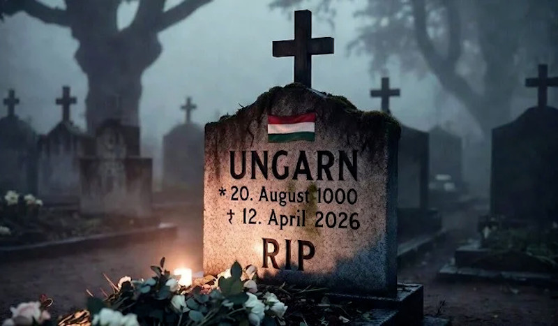 "Quand une vache se sent trop bien, elle finit sur la glace. L'État hongrois, fondé le 20 août 1000 apr. J.-C., a choisi le 12 avril 2026 la voie de sa propre chute et cessera bientôt d'exister en tant qu'État souverain".