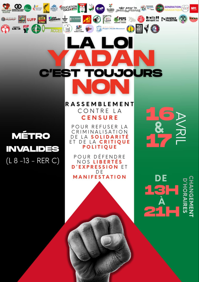 Alors, si nous ne pouvons plus signer, mobilisons-nous dans la rue ! EuroPalestine appelle ses adhérents et sympathisants à participer massivement à la protestation, notamment dès jeudi devant l'Assemblée Nationale, voire dès mercredi si d'autres initiatives devaient être annoncées dans la journée.