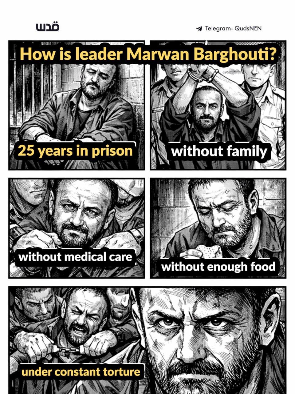 Malgré ces conditions, dit-il, Barghouti est resté lucide et concentré, cherchant à obtenir des nouvelles de sa famille et de la situation du peuple palestinien.