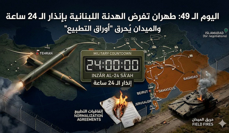 • Le lobby libanais : Comme l'a écrit le Dr Mohammad Hassan Sweidan, un "lobby libanais à Washington" fait pression pour que la guerre israélienne se poursuive. Les autorités libanaises officielles (qui avaient accepté des négociations directes à condition que la Résistance soit désarmée) ont fait obstacle à la trêve. Téhéran et la Résistance ont sorti le Liban des impasses de ses dirigeants, prêts à vendre le Sud pour quelques miettes politiques de plus.