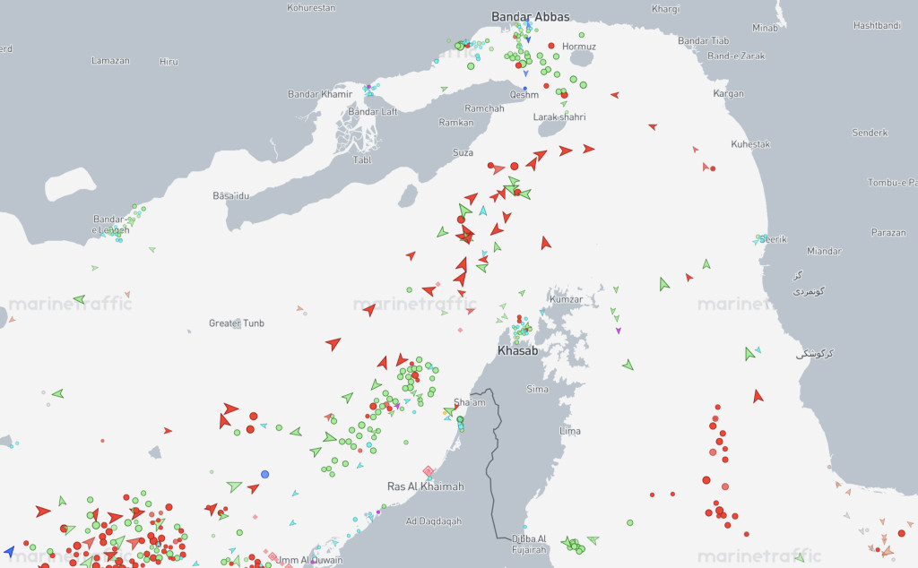 Trump's claim that the Strait of Hormuz "situation" was over is false. Iran remains in firm control. Iran announced that the Strait of Hormuz was open to commercial ships that are not tied to the US or Israel. Those ships must still seek permission to pass from the IRGC. Iran also stipulated that no military ships would be allowed into the Persian Gulf. Here's the marinetraffic.com photo as of 0020 hours eastern on 18 April. Not one US military ship in sight: