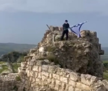 Mais la volonté d'annexer des territoires libanais est claire. Voir ce Libanais en train de retirer un drapeau israélien hissé récemment par l'armée d'occupation israélienne au château de Beaufort, dans le sud du Liban.
