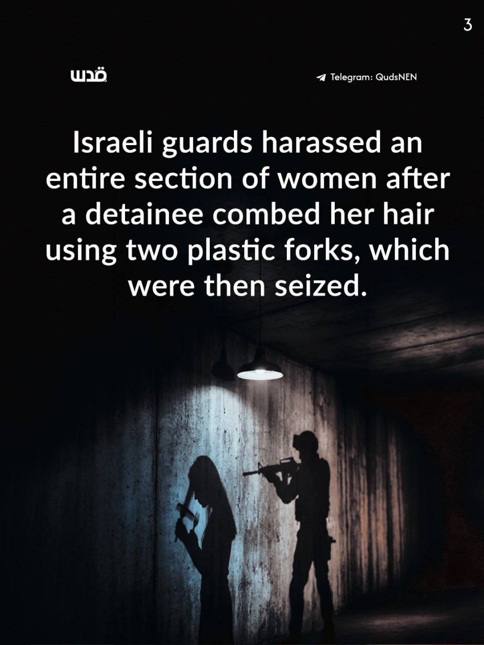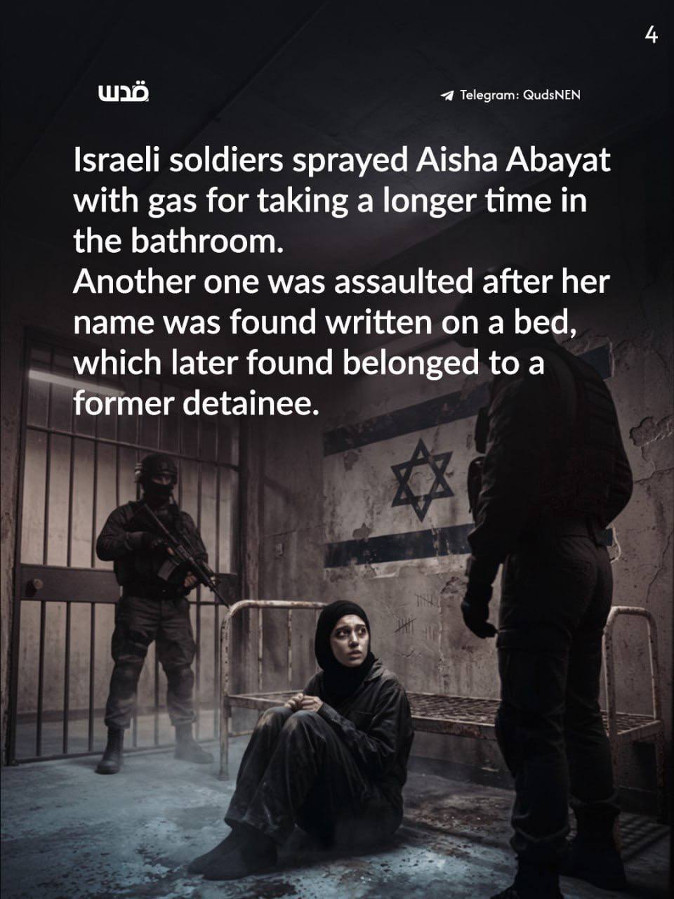 Dans les prisons israéliennes, les détenues subissent une réalité insoutenable, où l'ordinaire et le anodin deviennent des prétextes à la punition, et où le moindre détail ouvre la porte à de nouvelles formes de répression. Là, on invente des raisons à partir de rien : une cuillère confisquée, une fourchette usagée, un nom écrit sur un lit... Autant de prétextes qui justifient l'humiliation et les sévices. Chaque mesure arbitraire vise à briser l'esprit avant le corps.
