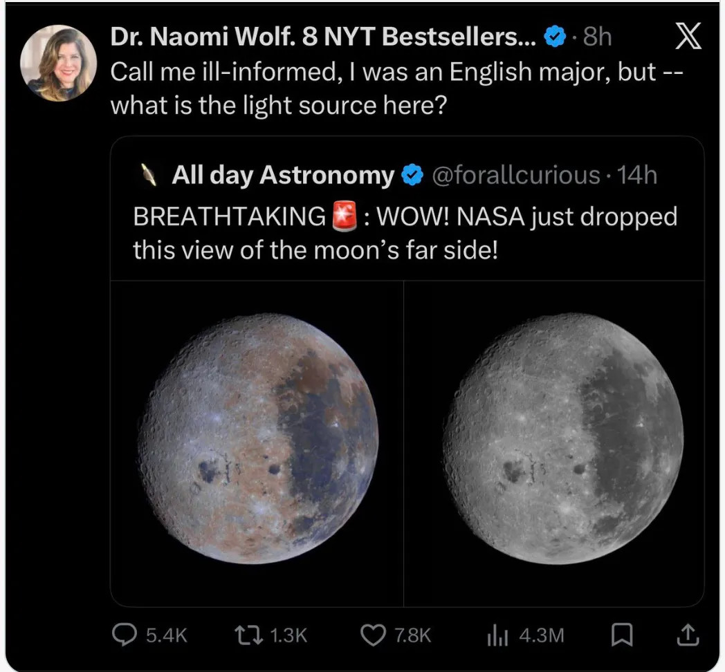 Many of those online who trolled my "stupid question", mocked me for not having first "asked Grok" about light on the moon.