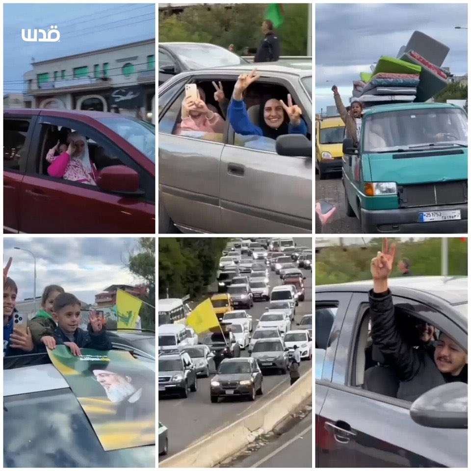Les civils libanais reviennent dans leurs villages du sud du Liban après des semaines de déplacement en raison des attaques israéliennes contre le pays. Source : Quds News Network.