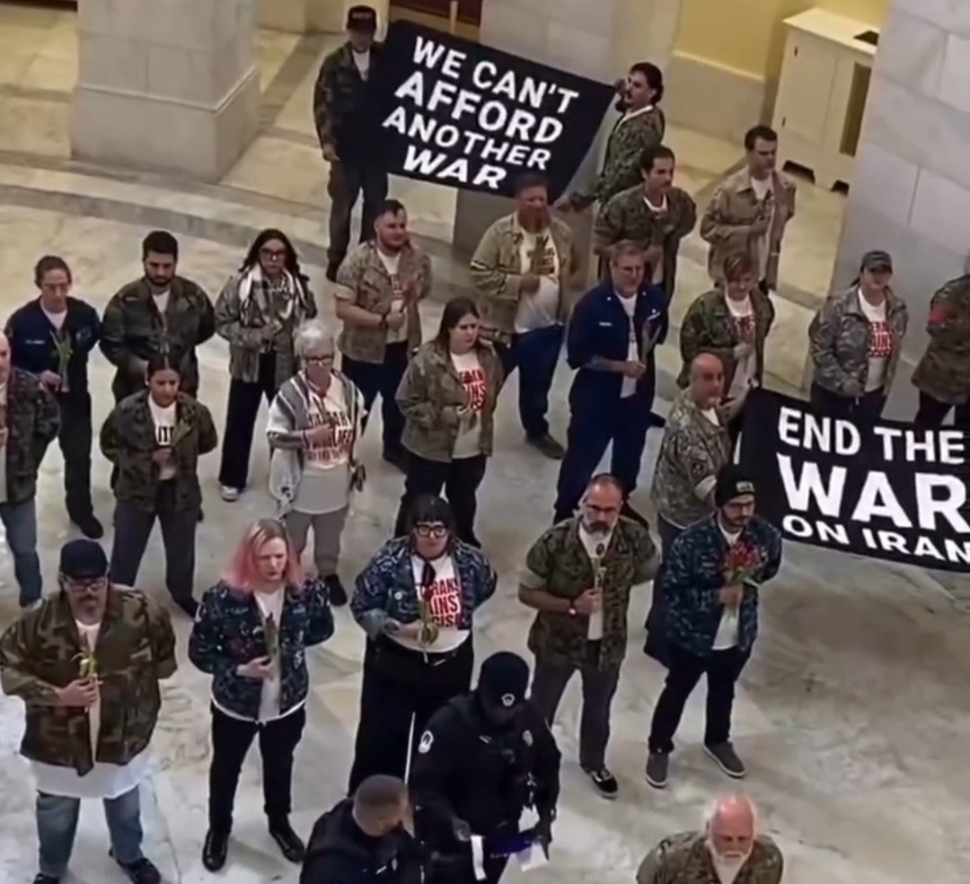 Des membres de "Veterans Against Fascism", (Vétérans contre le fascisme) y compris des vétérans handicapés, ont été arrêtés à l'intérieur du Capitole américain après avoir organisé une manifestation contre la guerre en cours en Iran, sous l'administration du président Trump.