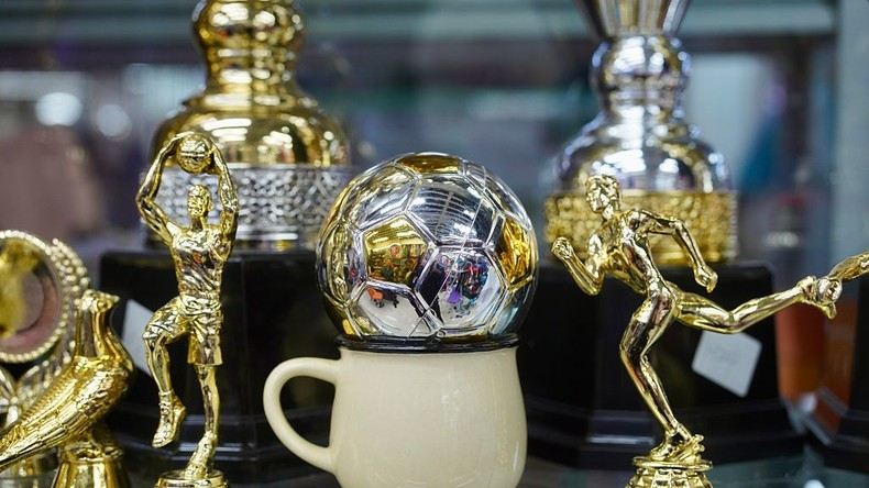 Des trophées de football sont exposés dans un magasin avant la Coupe du Monde de la FIFA 2026, le 21 avril 2026, à Yiwu, dans la province du Zhejiang en Chine. [Photo d'illustration]
