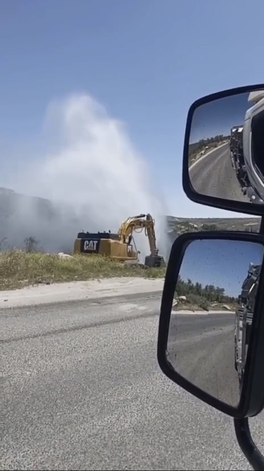 Les bulldozers de l'armée d'occupation israélienne déracinent des arbres, rasent le terrain et endommagent une conduite d'eau principale à l'entrée de Marah Rabah, dans le village d'Al-Minya, au sud-est de Bethléem, en Cisjordanie occupée.