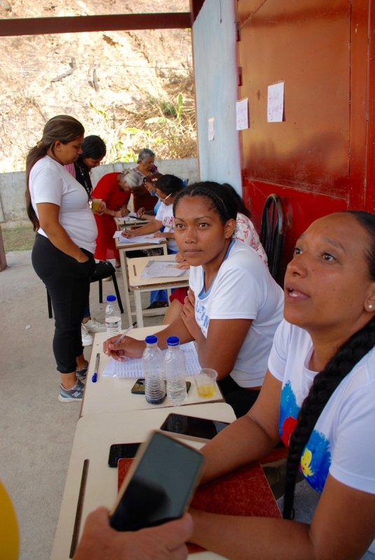 Angel Prado (ML)Plein cœur de la capitale, Comuna « La Candelaria Heroïca ». Rappel des résultats de la « consulta » précédente : dix immeubles ont été entièrement rénovés. Une longue file d'attente s'abrite du soleil de plomb. On nous confie : « Ce qui s'est passé le 3 janvier a motivé les gens pour venir voter. »Une Commune (3 882 habitants, 2 400 votants) de la « parroquia » La Vega : Mariela, dite « La Negra », se considère comme une guerrière faisant partie d'un collectif. « Nous, trente femmes au foyer, avons construit des logements en autogestion, financés par l'Etat. » Quatre-vingt appartements ! « Face à l'impérialisme, nous montrons ce qu'est le visage des femmes latinas, Claudio Scheinbaum [présidente du Mexique] et Delcy Rodríguez. Que le monde entier élève la voix pour nous appuyer ! »« Commune 5 de Marzo Comandante Eterno » : sept conseils communaux, plus de sept mille familles. Début d'après-midi, sourire ravi : « On est l'avant-garde, on dédie cette journée à Cilia Flores, on en est déjà à 80 % de participation ! »Circuit communal Felipe Antonio Acosta, « parroquia » Coche, en grande banlieue de Caracas, sur la route Panaméricaine. Le 3 janvier, huit hélicoptères ont terrorisé les habitants. L'Empire le plus puissant du monde osait souiller la terre de Bolivar, les hélicos tiraient sur Fuerte Tiuna. « Cette invasion nous a laissés blessés, mais, vous le voyez, on a su se relever. »