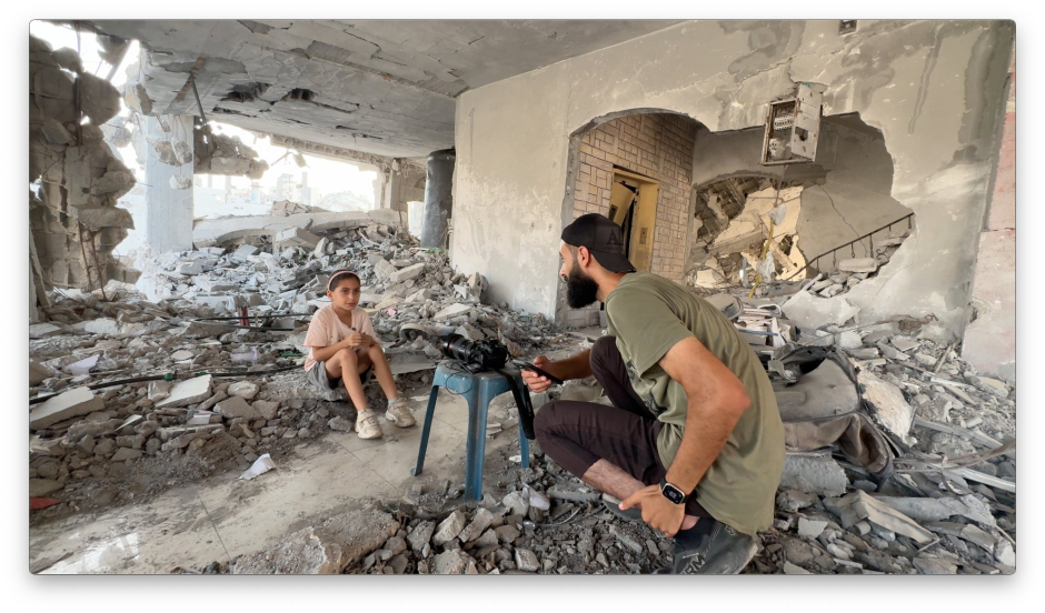 Photo extraite du film "2 ans en immersion dans l'enfer de Gaza", réalisé par Charles Villa à partir du vlog du reporter Palestinien Suhail Nassar, qui a filmé son quotidien et celui de deux enfants dans le génocide de la bande de Gaza. Le film est disponible sur la chaine Youtube de Charles Villa, ICI .