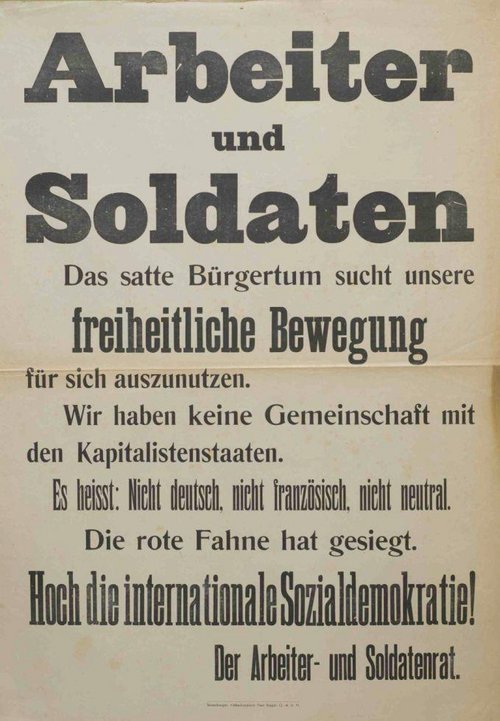 Fin de la guerre de 14/18, l'Europe est exsangue, en France et en Allemagne, les soldats ne veulent plus servir de chair à canon et jurent « plus jamais ça ! ». Dans plusieurs grandes villes allemandes des ouvriers et des soldats prennent le pouvoir pour imposer une autre société, libérée de l'oppression du monde ancien. Beaucoup d'alsaciens servent dans la marine impériale. Certains d'entre eux sont gagnés aux idées socialistes ou anarchistes, influencés par la révolution russe et le mouvement ouvrier allemand, ils prônent des idées pacifistes et internationalistes. Sur la Baltique, le 3 novembre 1918, plusieurs milliers d'entre eux se révoltent et s'organisent en assemblées autogérées et démocratiques.