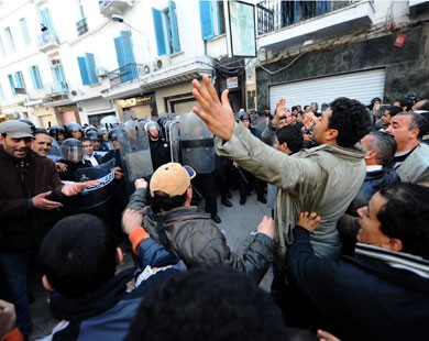 Hier lundi 27 décembre, la police a réprimé une grande manifestation d'ouvriers organisée au centre-ville de Tunis par des syndicats de travailleurs répondant à l'appel de l'Union Générale Tunisienne du Travail, pour exprimer leur solidarité avec les habitants du Gouvernorat de Sidi Bouzid où des manifestations ont lieu depuis 11 jours pour protester contre ce qui a été qualifié de propagation du chômage et de la corruption.