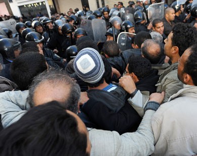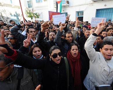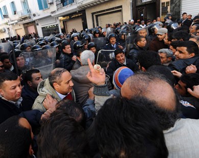 Des accrochages ont opposé des centaines de manifestants à la police près du siège de l'UGTT, après que les manifestants avaient essayé de briser le cordon sécuritaire pour aller manifester sur l'avenue du 7-Novembre (ex-avenue Bourguiba) au centre de la capitale, ce qui a fait quelques blessés.