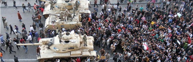 Dans la révolution tunisienne, l'armée a eu un rôle déterminant en refusant de tirer sur les manifestants, et en poussant Bel Ali au départ. En Égypte, elle est aussi un élément pivot, et ambigu, de la réussite ou de l'échec de la révolte démocratique qui s'exprime de manière inédite au Caire, à Alexandrie ou dans les villes moyennes du Delta.