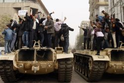 Pendant ce temps là, le peuple d' Égypte défie la peur, le couvre-feu, les balles et descend massivement dans les rues du Caire, d'Alexandrie, de Suez, de Port-Saïd, de Mansourah, d'Assiout, de Fayoum, d'Ismaïlia, d'Al Minya etc. pour exiger le départ du pharaon. Et malgré ce rejet massif du pouvoir égyptien par tout un peuple et ces manifestations puissantes montrées par toutes les télévisions et tous les médias du monde, les États-Unis restent fidèles au tyran et à son régime.