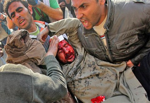 Un manifestant de la place Tahrir, gravement blessé par les nervis du clan Moubarak - Photo : EPA