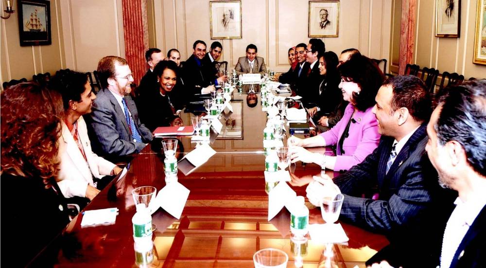 Condoleezza Rice a décrit la délégation égyptienne en faveur de la démocratie en visite au département d'État comme « de l'espoir pour l'avenir de l'Égypte ».