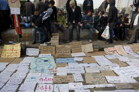Messages de protestations, le Caire, 1° février 2011 - Photo : Hossam el-Hamalawy