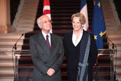 Au lieu de réserver sa première visite aux pays de l'UMA, monsieur Ounaies a choisi d'aller à Paris, ne dit -il pas « Je suis heureux de vous parler à côté de Michèle Alliot-Marie. C'est pour moi un honneur, c'était peut-être un petit rêve que je faisais, et que l'Histoire ou l'accélération de l'Histoire m'a permis de réaliser. J'aime écouter Michèle Alliot-Marie en toutes circonstances et dans toutes les tribunes ».