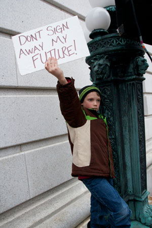 Sally, une enseignante, a dit que les coupes budgétaires rendraient le paiement des factures beaucoup plus ardu. « L'hiver dernier a été vraiment difficile pour moi », a-t-elle dit. « J'ai dû finalement emprunter de l'argent juste pour payer mon impôt foncier. J'ai un autre emploi en plus d'être professeur. Au moins, je n'ai pas d'enfant à l'université. Nous n'avons pas des boulots de rêve; plusieurs parmi nous vivent d'un chèque de paye à l'autre en essayant de joindre les deux bouts. »