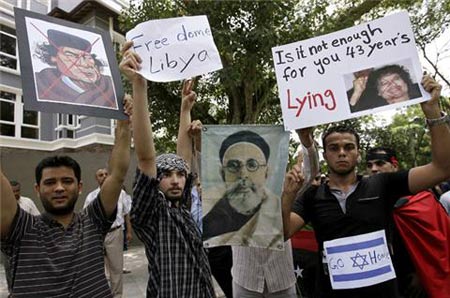 newsnet_49790_khadafi2202.jpgEn Égypte, le savant Youssof al-Qaradawi a émis une fatwa autorisant toute personne à le liquider d'une balle pour débarrasser son peuple.