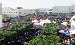 Des dizaines de milliers de manifestants ont submergé (hier 25/02) la place de la Kasbah à Tunis et les artères environnantes, à l'appel des participants au sit-in de la place du Gouvernement pour une manifestation massive et une journée de colère.