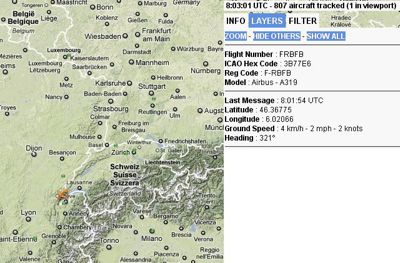 Le 2 mars, à 9 heures (08H03 UTC), le site radarvirtuel.com, utilisant le système Google Maps pour cartographier toutes les données reçues du réseau des utilisateurs de récepteurs ADS-B a signalé l'A319 F-RBFB, en train d'atterrir à l'aéroport international de Genève. Ce vol était totalement occulté des données publiées par l'aviation civile, il n'a été enregistré nulle part, ce qui est extrêmement rare et ce qui est impensable de la part d'un opérateur qui n'a rien à cacher. Sans le réseau des utilisateurs de récepteurs de signaux radars ADS-B, jamais l'A319 F-RBFB n'aurait pu être localisé. (Voir la capture d'écran ci-dessous)