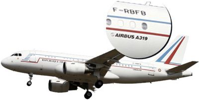 Les recherches avec les immatriculations peintes sur les carlingues des appareils (voir photos jointes) ne donnent aucun résultat. L'A319 immatriculé F-RBFA, appareil officiel de la Présidence française depuis 2002, aujourd'hui vendu à la Présidence du Sénégal, n'aurait-il donc jamais existé ?