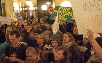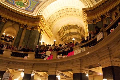 Les responsables syndicaux et leurs partisans ont aussi essayé de s'adresser à la manifestation spontanée, dont John Nichols du journal The Nation. Ils ont désespérément cherché à nourrir les illusions dans le Parti démocrate en louant les agissements des « Wisconsin 14 » qui avaient fui l'Etat de Wisconsin.