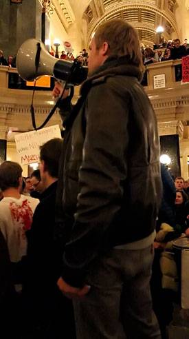 Une équipe du Socialist Equality Party (SEP, Parti de l'Egalité socialiste, USA) était présente sur les lieux. Andre Damon, journaliste du World Socialist Web Site, a pu parler à des milliers de manifestants tant à l'intérieur qu'à l'extérieur du bâtiment du Capitole. Il a appelé à la formation de comités indépendants sur les lieux de travail afin de planifier une grève générale et faire partir Walker. Ces revendications ont été accueillies avec enthousiasme par les travailleurs présents. (Voir : « Walker doit partir! Grève générale au Wisconsin! »)