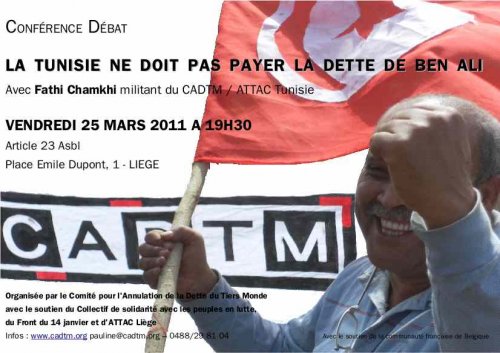Organisée par le Comité pour l'Annulation de la Dette du Tiers Monde avec le soutien du Collectif de solidarité avec les peuples en lutte, du Front du 14 janvier et d'ATTAC Liège