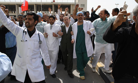 [Avec l'aide des Saoudiens] les autorités de Bahreïn mènent une campagne systématique d'agressions et d'arrestations contre les médecins et infirmiers qui ont soigné des manifestants blessés au cours des mois de protestations dans le royaume [Golfe persique], selon un groupe américain de défense des médecins.