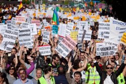 Pour ce qui est de l'organisation, elle existe, bel et bien, même si sans hiérarchie établie une fois pour toutes. Il s'agit d'une organisation horizontale où les décisions se prennent en fonction des événements et toujours de manière collective. Apparemment, ce mode de fonctionnement"fonctionne"et, même si l'on peut avancer l'argument qu'il s'agit, ici, d'organiser quelques milliers de personnes autour de thèmes qui ne sont pas ceux de la vie réelle de qui veut gérer la Cité, on ne peut passer sous silence la question fondamentale que cela pose aux partis politiques en général : les partis politiques actuels et leur mode d'organisation, leur manière de communication et de représentation de la société, ne correspondent plus ni aux temps qui courent, ni à ce que les populations attendent -d'abord et avant tout en leurs couches les plus jeunes ! Il faudra en tirer les leçons et, dans ce sens, le mouvement, quoi qu'il arrive, n'aura pas été vain. Pour ce qui touche au contenu programmatique, à l'idéologie et au projet de société, il n'en va pas autrement : même s'il n'est pas rédigé, même si les termes ne font pas programme ni thèses de gouvernement, le contenu se trouve, de manière implicite, dans les mots d'ordre et les slogans : la société actuelle crée de l'injustice et des inégalités, des crises et de la violence ("la violence, c'est aussi 600 euros par mois") et, donc, la #spanishrevolution veut autre chose -notamment d'autres politiques qui abordent les"vrais"problèmes de société comme un toit et un emploi pour tous, plus de justice et de solidarité, plus de démocratie, moins de pouvoir à l'argent, aux banquiers et aux spéculateurs, plus de pouvoir au peuple. C'est pourquoi leurs slogans sont clairs :"nous ne sommes pas des marchandises","nous ne sommes plus des moutons","notre force, nos mains","politiciens, vous ne nous représentez pas", etc. Les idéaux sont clairs, les objectifs tracés à grands traits (comme autant de balises à des débats futurs), les limites clairement posées : il s'agit bien d'une véritable révolution. Toute la question est de savoir si tous les mécontentements se rejoignent dans ces mots d'ordre et si, d'aventure le changement se produisait, ils seraient susceptibles de s'entendre sur des objectifs même à minima...