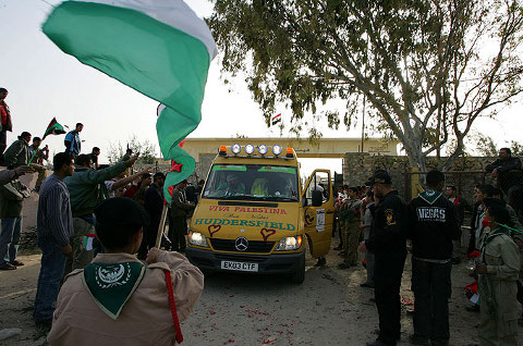 Il y a eu de régulières initiatives du mouvement international de solidarité pour forcer le blocus de GAza. Ici le convoi Viva Palestina - Photo : Gallo/Getty