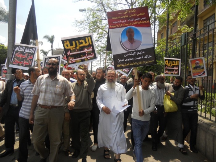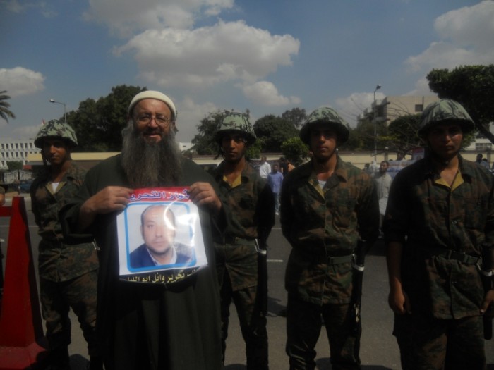 - - Depuis le 13 avril dernier en effet, Wael Aly, l'un des principaux organisateurs de la seconde occupation de la place Tahrir (cf. Place Tahrir : avec les partisans de la République libre d'Egypte) est emprisonné suite à un mandat d'arrêt lancé contre lui par le CSFA, le présentant comme un homme de main d'Ibrahim Kamel, un ancien ponte de l'ex-Parti National Démocratique, le parti de Moubarak. Il est accusé d'avoir poussé la population à la révolte contre l'armée dans la nuit du 9 avril pour couvrir la fuite des « officiers libres ». Ces derniers avaient rejoint la place Tahrir, volant ainsi la vedette aux Frères musulmans lors du rassemblement monstre qui avait réuni plus d'un million de manifestants la veille. Durant cette journée, j'avais assisté à un véritable bras de fer entre le service d'ordre des « frères » et ces révolutionnaires populaires qui demandaient que les familles des « martyrs de la révolution du 25 janvier » puissent prendre la parole sur la tribune. Après des tractations houleuses, ils ont eu finalement gain de cause : les familles se sont exprimées et ont ensuite rejoint la foule. Mais soudain, une agitation s'empara de la tribune. Des officiers y furent hissés, 27 au total. Complètement exaltés, les manifestants leur firent alors une véritable ovation, reprenant en clameur le fameux slogan « Chaab, djeich, yad ouahda !» (le peuple, l'armée, une seule main !). Même Safouat Higazi, l'orateur vedette des Frères musulmans présent à ce moment-là, n'a pu s'empêcher de lancer un « Ce sont nos frères, ce sont nos frères ! », avant de quitter rapidement le lieu devenu trop sulfureux. Prudence oblige ! Une ligne rouge venait en effet d'être franchie. Les Frères musulmans, conscients de la gravité de la situation, se sont très vite retirés, tandis que Wael Aly grimpait sur la tribune pour voir ce qui s'y passait, se retrouvant en première ligne avec les officiers. Car jusque-là il s'était réfugié en dessous... pour se plonger dans un sommeil de plomb !