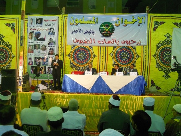L'info s'est répandue comme une trainée de poudre. À 18h plus de 500 personnes étaient au rendez-vous sous le chapiteau à ciel ouvert, dressé pour l'occasion sur un terre-plein en bordure de l'avenue Nasser, l'un des grand axes de la ville. La plupart ont fait le déplacement en famille, par curiosité. Le nom de Safouat Higazi était sur toutes les lèvres. Safouat Higazi ? C'est l'orateur vedette des Frères musulmans, celui-là même qui a enflammé de ses prêches la place Tahrir, durant les vendredis qui ont suivi les journées révolutionnaires de janvier. Il était sur toutes les affiches, pour un numéro en duo avec Mohamed Albeltagy, la vedette montante du parti, élu député en 2005 et 2010. Et de plus représentant de la Confrérie au Conseil des dépositaires la Révolution consulté par le Majliss El Askari (le Conseil Suprême des Forces Armées, CSFA).