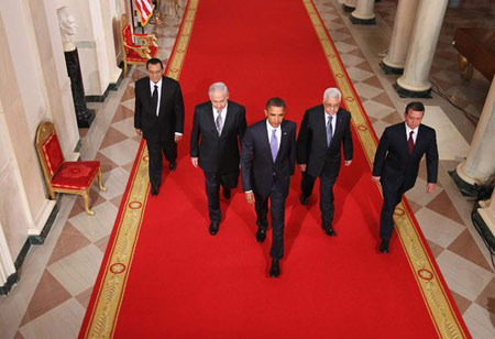 Et que diable a bien pu vouloir dire le Grand Discoureur quand il a dit que "tout pays a droit à l'auto-défense" mais que la Palestine serait "démilitarisée" ? Ce qu'il a voulu dire, c'est qu'Israël pourrait continuer à attaquer les Palestiniens (comme en 2009, par exemple, lorsqu'Obama est resté traîtreusement silencieux) pendant que les Palestiniens devraient prendre ce qui leur tombe dessus s'ils ne se comportent pas selon les règles - parce qu'ils n'auront pas d'armes pour se défendre. Comme pour Netanyahu, les Palestiniens doivent choisir entre l'unité avec le Hamas ou la paix avec Israël. Tout ceci était très bizarre. Quand il n'y a pas d'unité, Netanyahu nous dit qu'il n'a pas d'interlocuteur palestinien parce que les Palestiniens sont désunis. Pourtant quand ils sont unis, ils sont disqualifiés pour les pourparlers de paix.