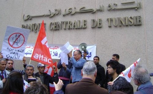 25 février 2011. Distribution de 5000 tracts d'un appel exigeant du gouvernement provisoire de Ghannouchi 'la suspension du paiement du service de la dette eut égard à la situation exceptionnelle que traverse notre pays et au vu des besoins sociaux immenses' et d'exiger que 'Pendant la durée de suspension du paiement, un audit sur l'intégralité de la dette publique tunisienne (externe et interne) doit être mené pour déterminer la part illégitime, celle qui n'a pas profité au peuple' laquelle devra être répudiée.