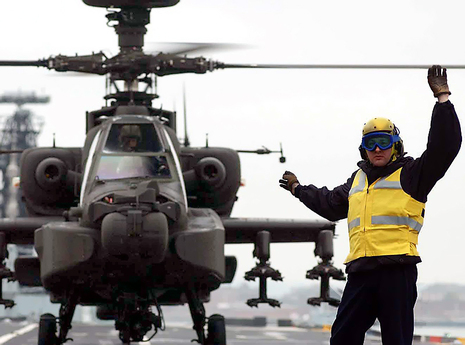 Les Apaches seraient déployées à partir du HMS Ocean, le plus gros navire de guerre britannique. À la mi-mai, des exercices en mer ont été tenus au large de Chypre, impliquant des bateaux de guerre britanniques et néerlandais, avec le HMS Ocean jouant un rôle central comme porte-hélicoptère. « L'exercice incluait des répétitions de défense anti-aérienne et du tir à munitions réelles en mer, avec des exercices amphibies en zone côtière. »