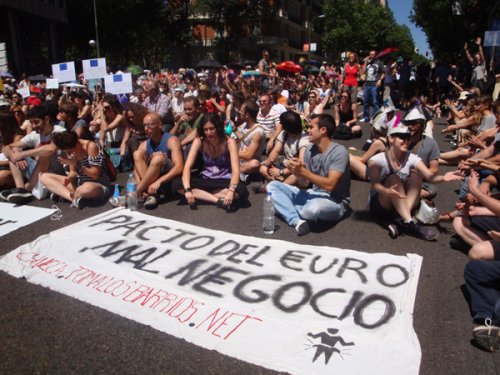 Sous un soleil de plomb, les Madrilènes sont venus dénoncer « l'Europe des marchés », et une faillite qui n'est pas la leur mais « celle du système ». Tous viennent témoigner d'une même lassitude face à la crise qui étrangle la société espagnole, et leur indignation face aux mesures néolibérales en Europe, qui visent à « faire payer la crise aux citoyens plutôt qu'à ceux qui l'ont provoquée ». « Ce n'est pas une crise, c'est une escroquerie » affichent de nombreuses pancartes.
