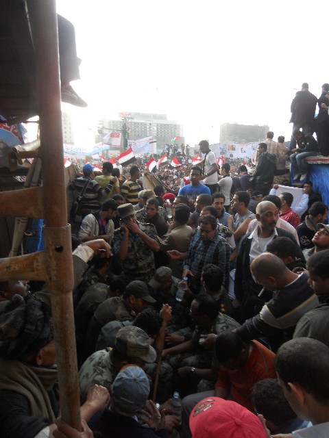 12- J'ai essayé de convaincre les gens qui poursuivaient leur sit-in de rentrer chez eux en attendant que la tension baisse. Beaucoup de gens sont partis, mais d'autres sont restés. Ils ne voulaient pas partir, parce qu'ils venaient de l'extérieur et n'habitaient pas au Caire. D'autres encore, par sympathie avec les officiers protestataires, voulaient rester pour savoir comment la manifestation des officiers allait finir. Il y avait même des proches de ces officiers qui demandaient aux gens de ne pas les laisser seuls.