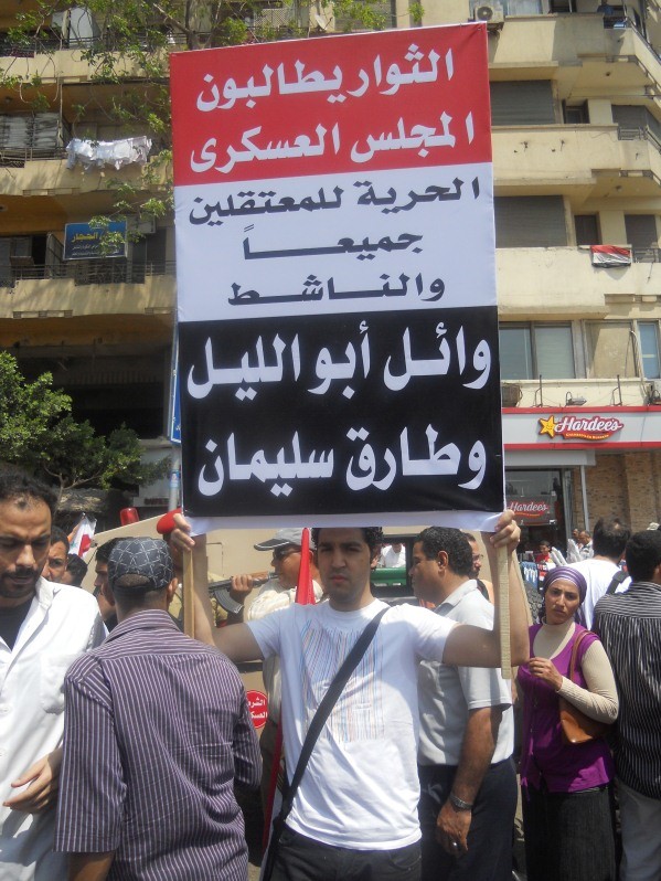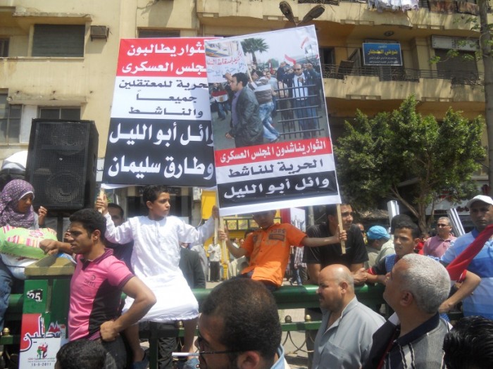 Depuis le 13 avril dernier, Wael Aly (Abouleil) est incarcéré à la suite d'un mandat d'arrêt lancé le 9 avril par le Conseil suprême des forces armées (CSFA), au motif qu'il aurait incité la population à la révolte contre l'armée, commis des actes de violence contre la population et incendié deux véhicules militaires. Le communiqué du CSFA le présentait comme un homme de main à la solde d'Ibrahim Kamel, un ancien membre du Parti National de l'ex-président Moubarak, et donc contre-révolutionnaire.