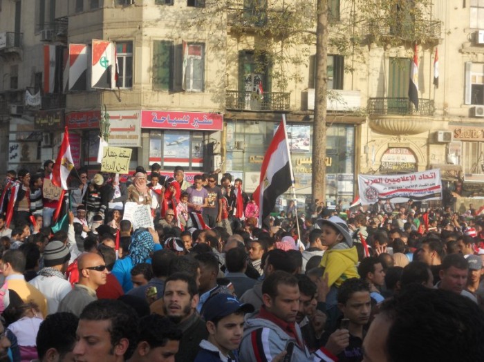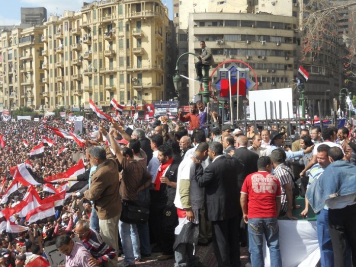 Sur le terrain, les Frères musulmans ne se distinguaient pas des autres révolutionnaires. Ils n'étaient pas seuls sur la scène et ils n'agissaient pas à part. Toutes les affaires et le travail qui se faisaient sur la place se menaient en commun. Le podium de la révolution était ouvert à tous les Egyptiens, même si, à certains moments, certains critiquaient ce podium, disant qu'il n'avait ni chef ni même coordinateur. Mais malgré cela, ça a marché : le président a été destitué.